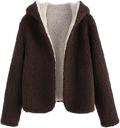 Hooded open front lamb wool coat clearance, ZAFUL Womens Reversible Open Front Coat clearance