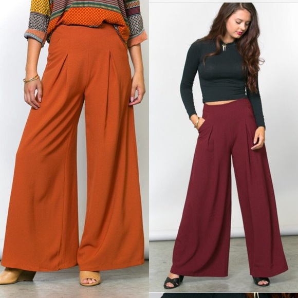Burnt orange wide leg trousers clearance, High Waisted Palazzo Wide Leg Trousers clearance
