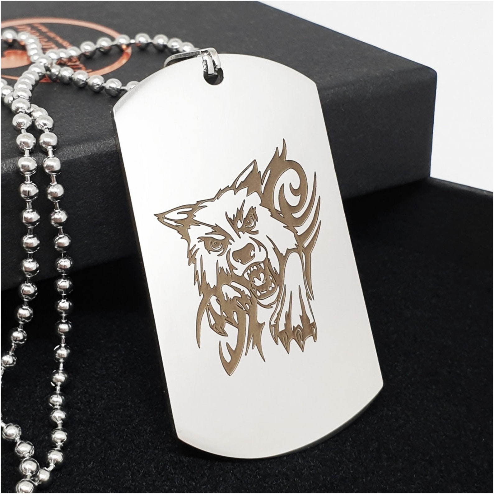 Wolf dog tag necklace clearance