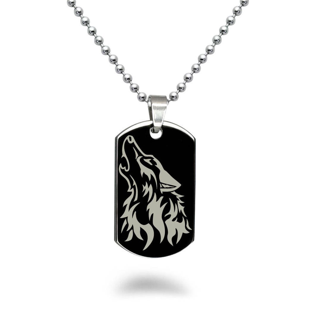 Wolf dog tag necklace clearance, Mens Personalized Dog Tag Necklace with Engraved Wolf Perfect | Etsy clearance
