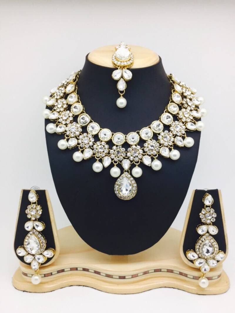 White stone jewel set clearance, Beautiful White Stone Necklace Set - South India Jewels clearance
