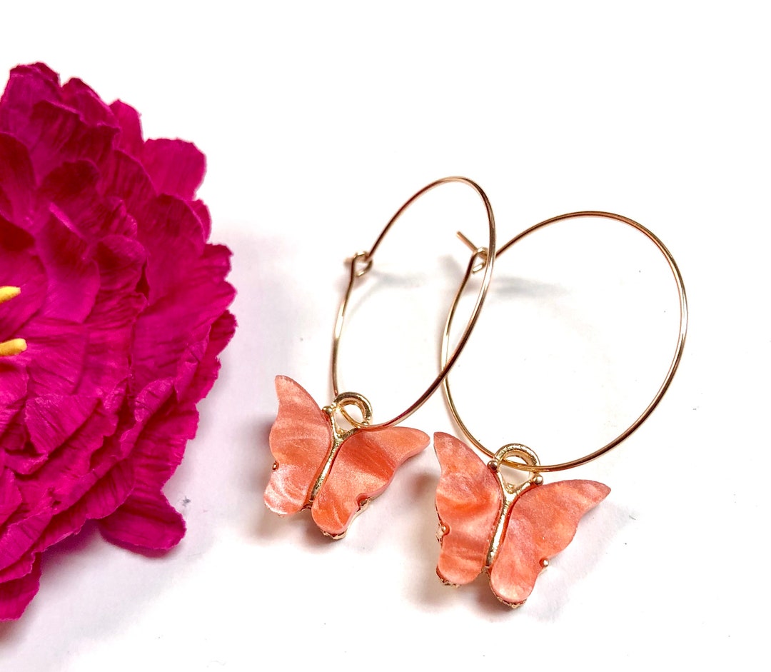 Orange butterfly earrings clearance, Butterfly Earrings, Butterfly Hoop Earrings, Orange Butterfly Earrings, Gold Hoops, Minimalist clearance
