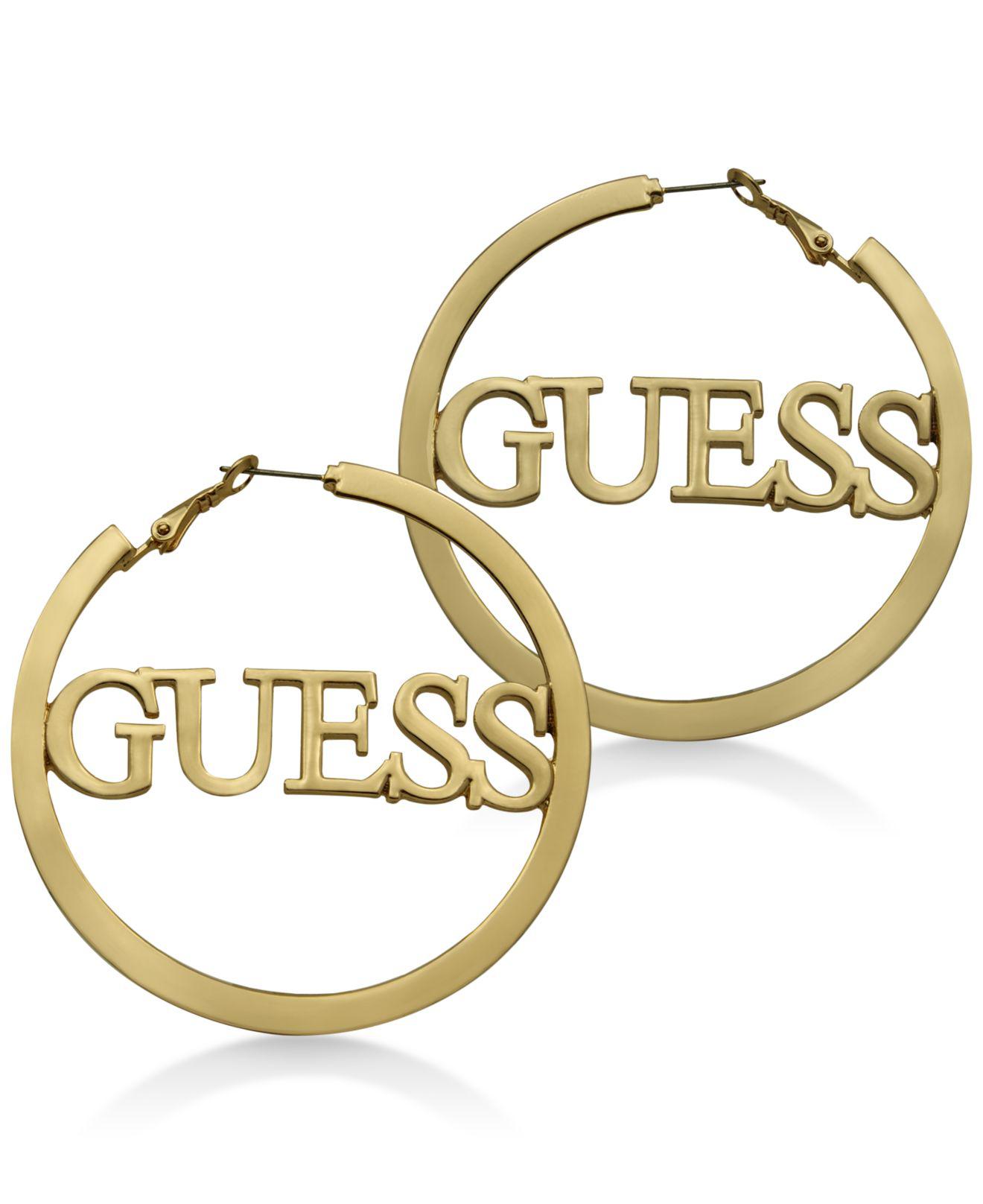 Guess hoop earrings clearance, Lyst - Guess Logo 2 1/4" Hoop Earrings in Metallic clearance