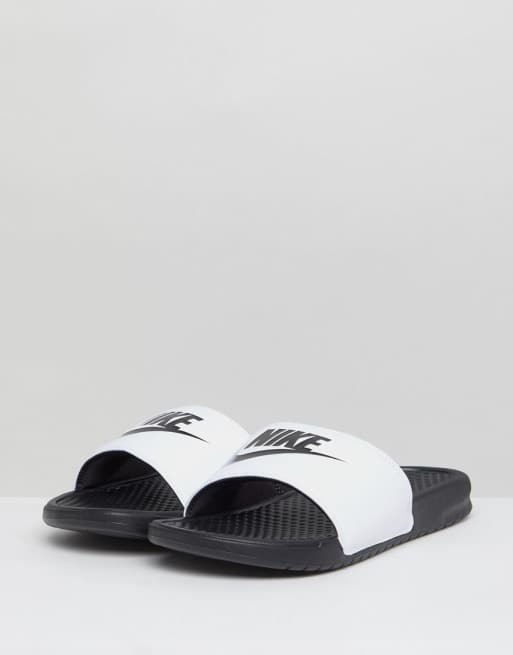 Nike benassi blancas y negras clearance
