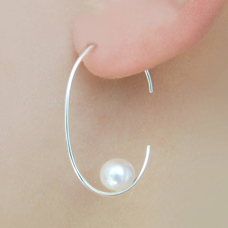 - Silver pearl hoop earrings sale online