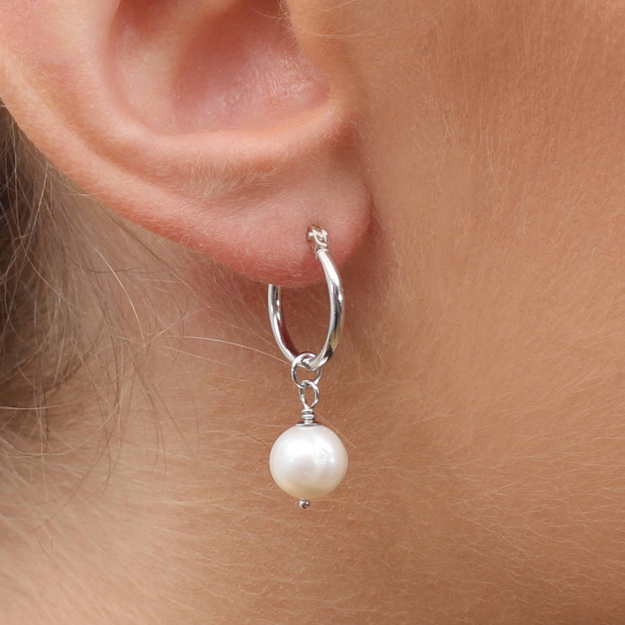 - Silver pearl hoop earrings sale