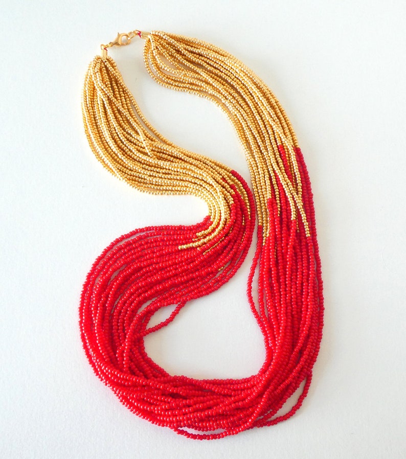 Gold red necklace clearance, Red and Gold Necklace Red Statement Necklacered - Etsy clearance