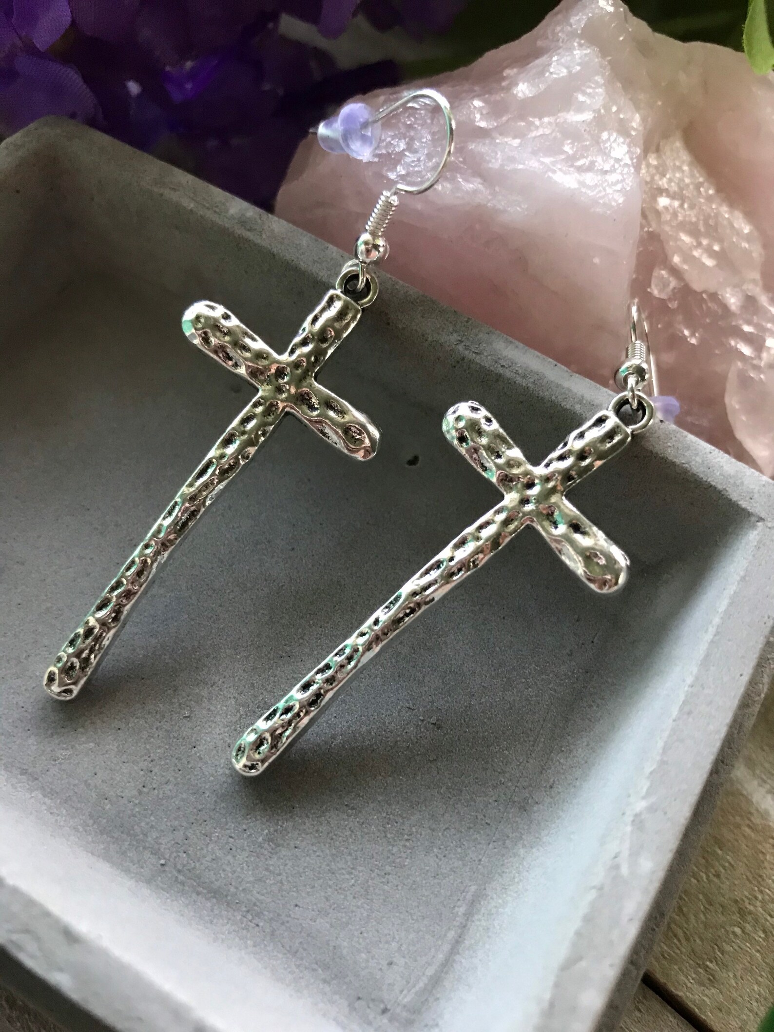 - Large silver cross earrings