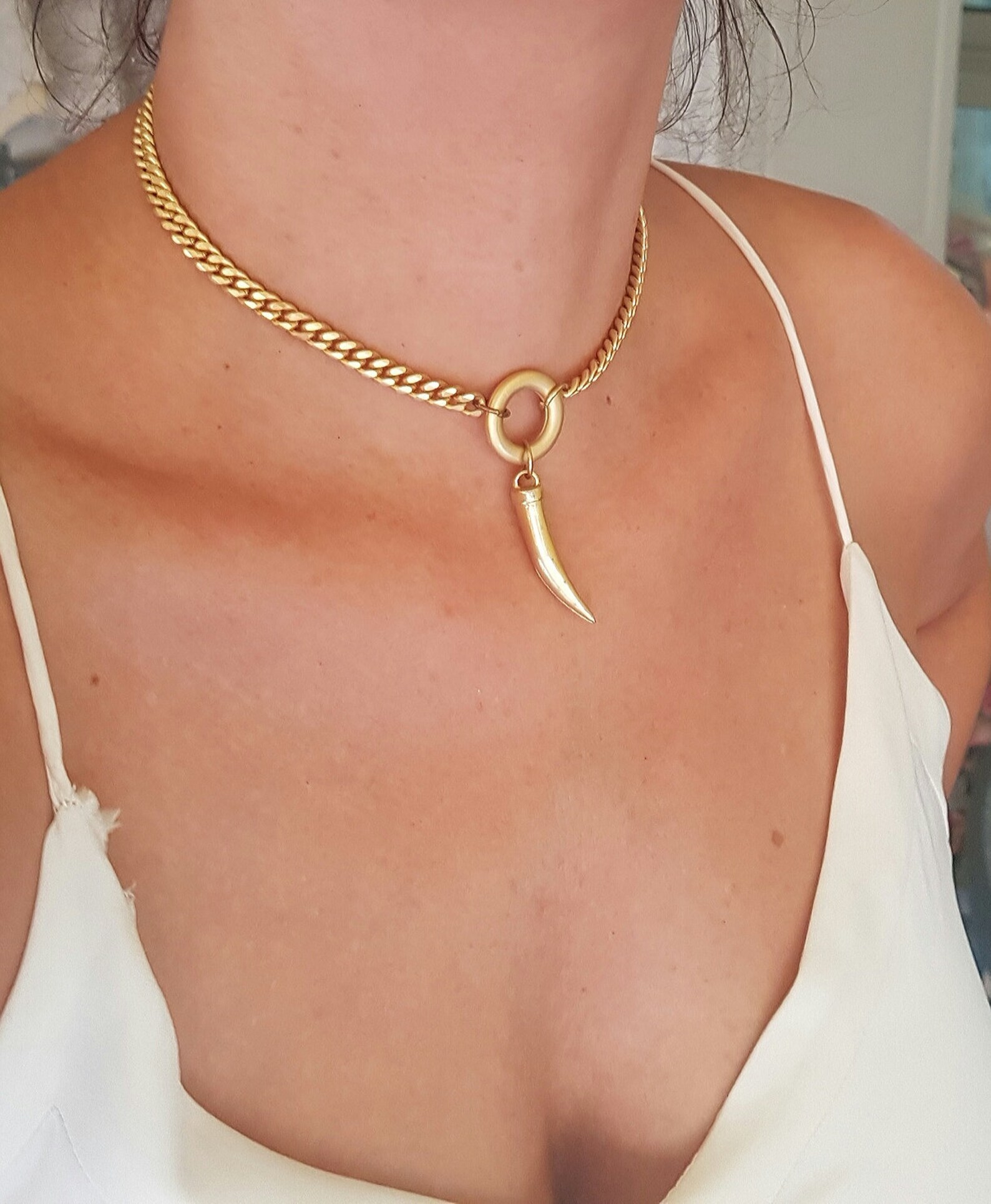 Gold horn necklace clearance