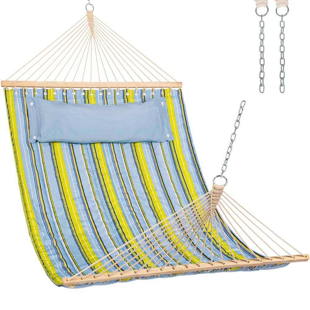 Home depot large sling hammock clearance, 12 ft. Double Tree Hammock with Hardwood Spreader Bar, Extra Large Soft Pillow (Greenandbeige clearance