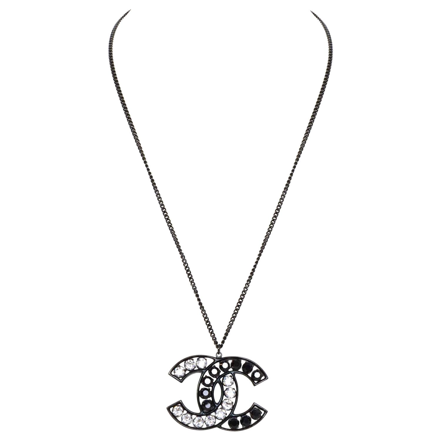 Black chanel logo necklace clearance, Authentic Chanel Rhinestone Logo Necklace clearance