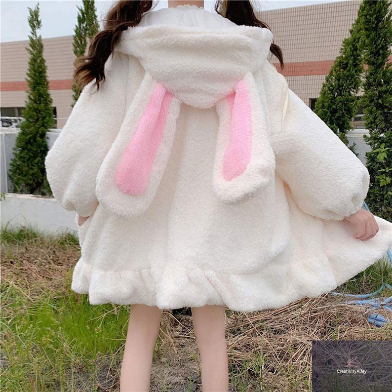 Bunny ear zip up hoodie clearance, Women Cute Rabbit Ear Hoodie Long Sleeve Blanket Sweatshirt Jacket Fuzzy Fluffy Zip up Coat clearance