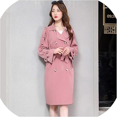 Womens pink trench coat clearance, AYUNSUE Lady Elegant Pink Trench Coat clearance