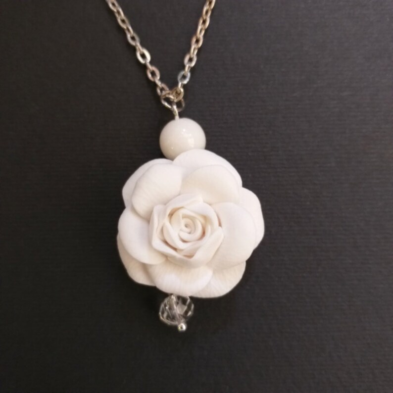 White flower pendant clearance, White Flower Jewelry Set. White Rose Necklace. White Rose - Etsy clearance