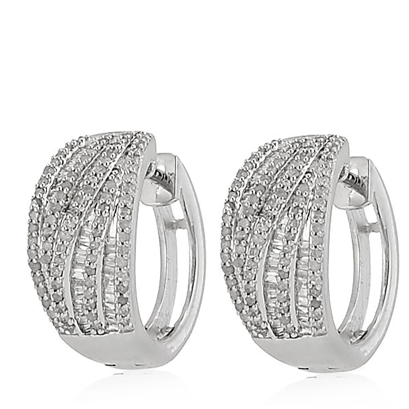 Qvc diamonique huggie earrings clearance, 0.95ct Diamond Baguette & Brilliant Cut Huggie Earrings Sterling Silver - QVC UK clearance