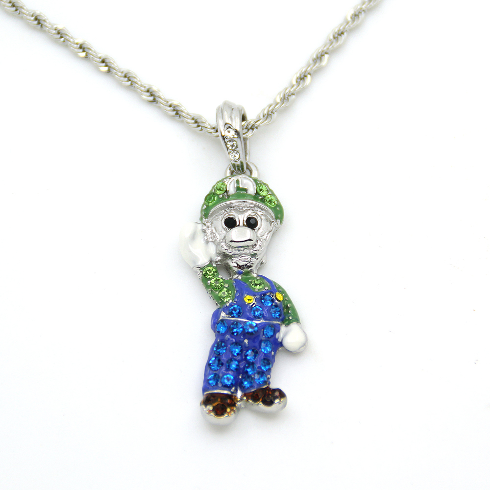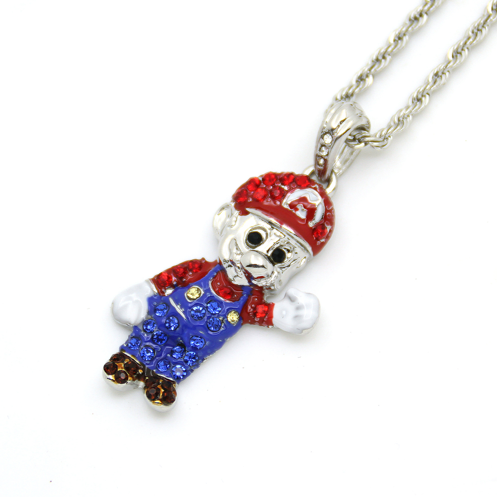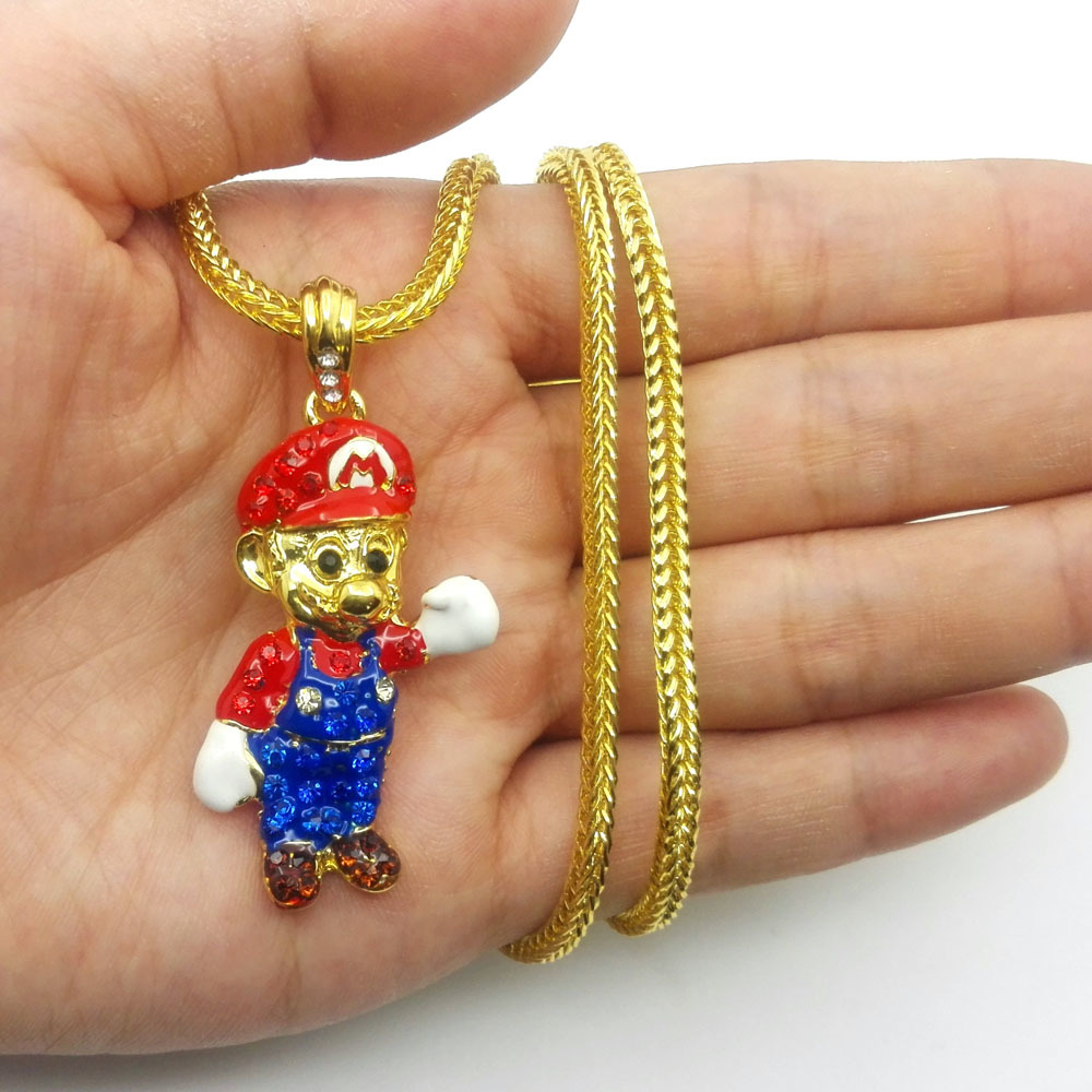 Iced out mario chain clearance, Bling Iced Out Mario Cartoon Game pendant with 36" Fanco Chain Hip hop jewelry - Necklaces clearance