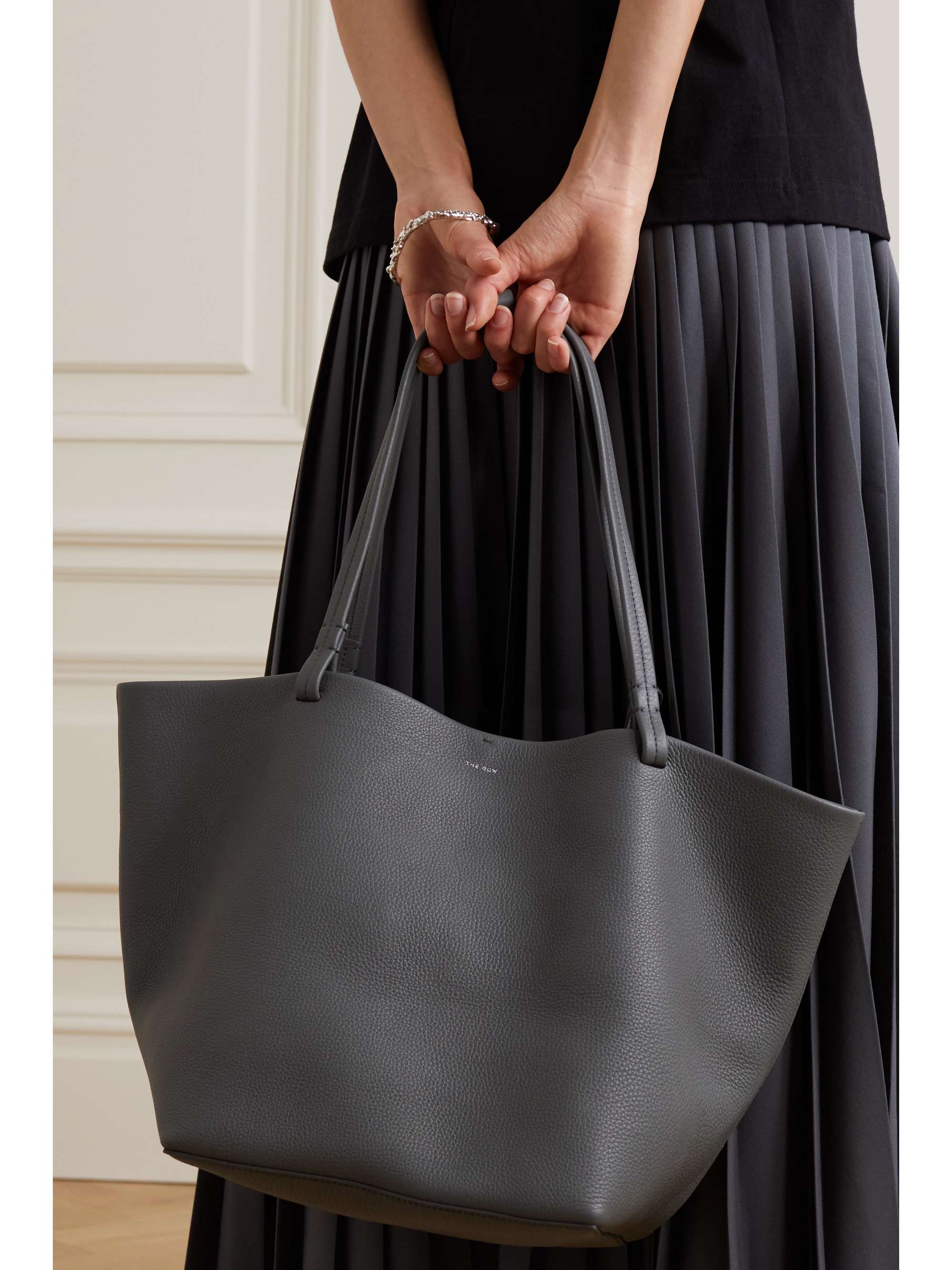 Gray leather tote clearance