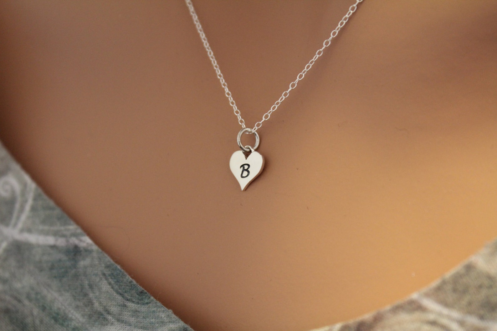 B heart necklace clearance, Mini Initial Necklace with Heart, Sterling Silver, Letter B Necklace, All Letters Available clearance