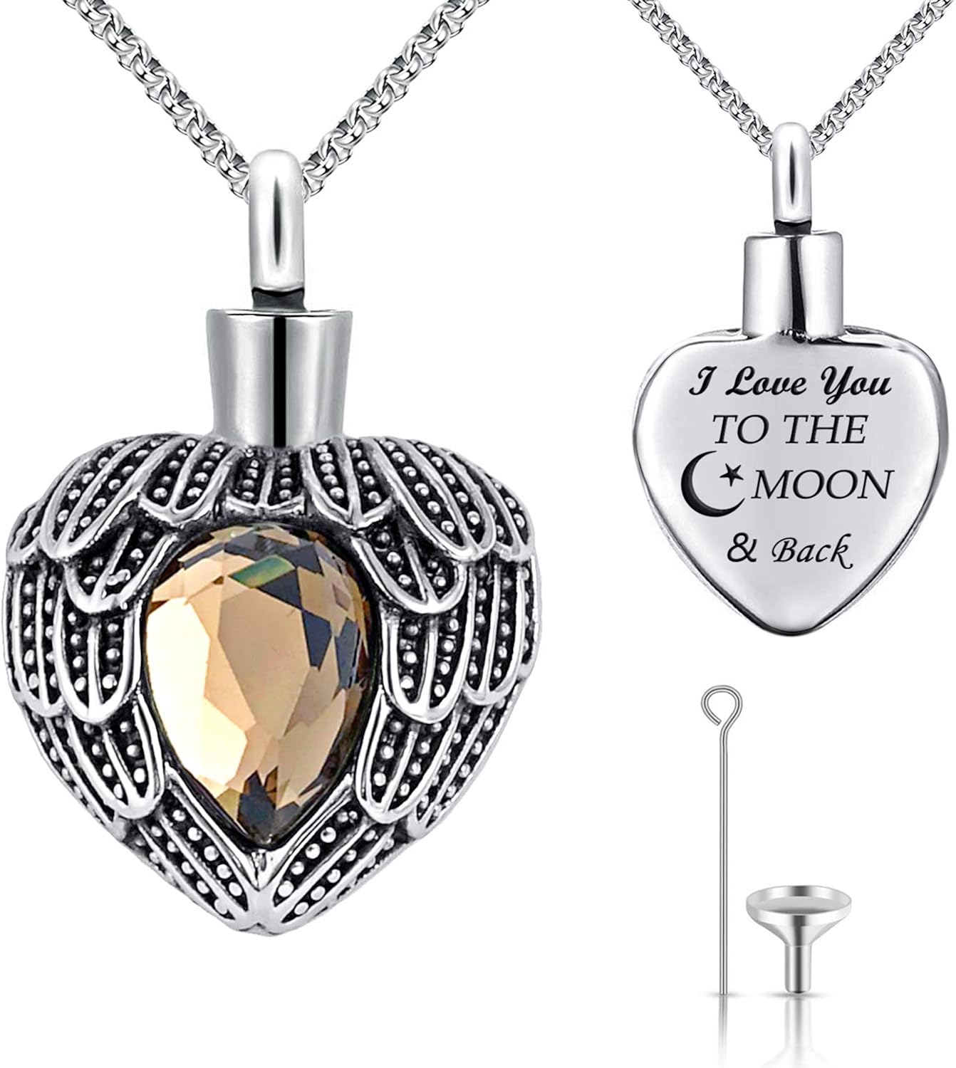 Amazon prime urn necklaces clearance, MUERDOU Urn Necklaces for Ashes Urns for Human Ashes Angel Wing Birthstone Cremation Jewelry clearance