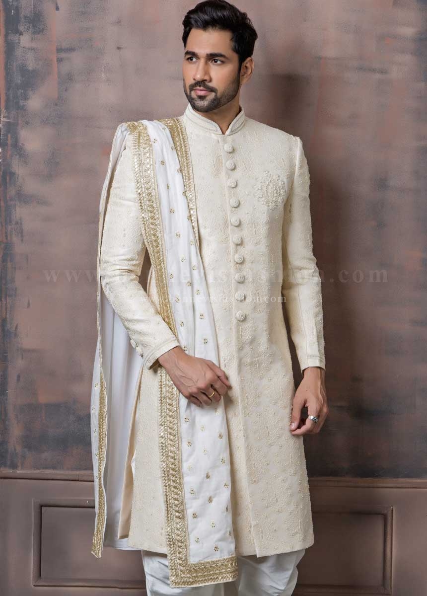 White groom sherwani clearance