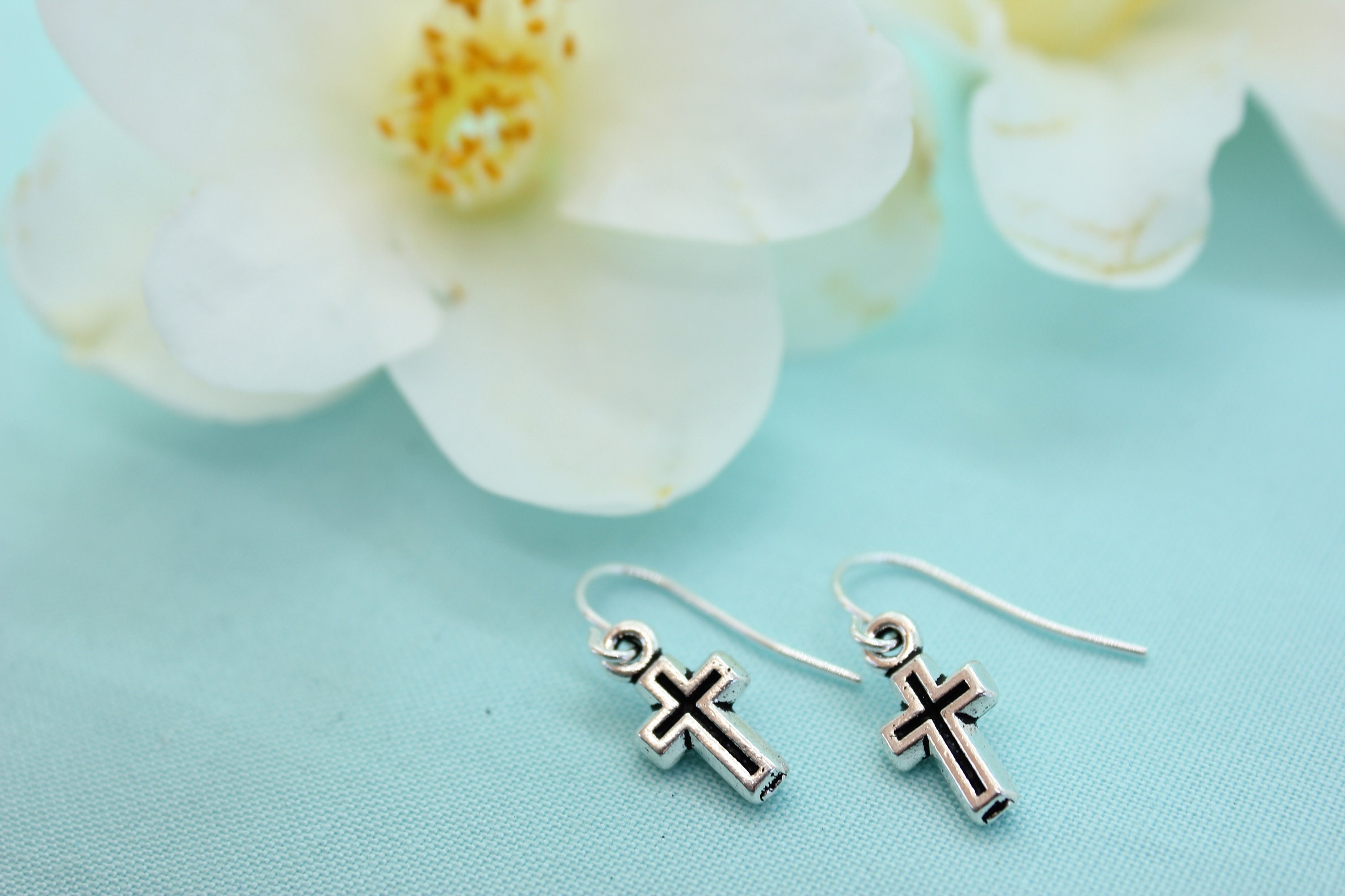 - Small silver cross earrings sale