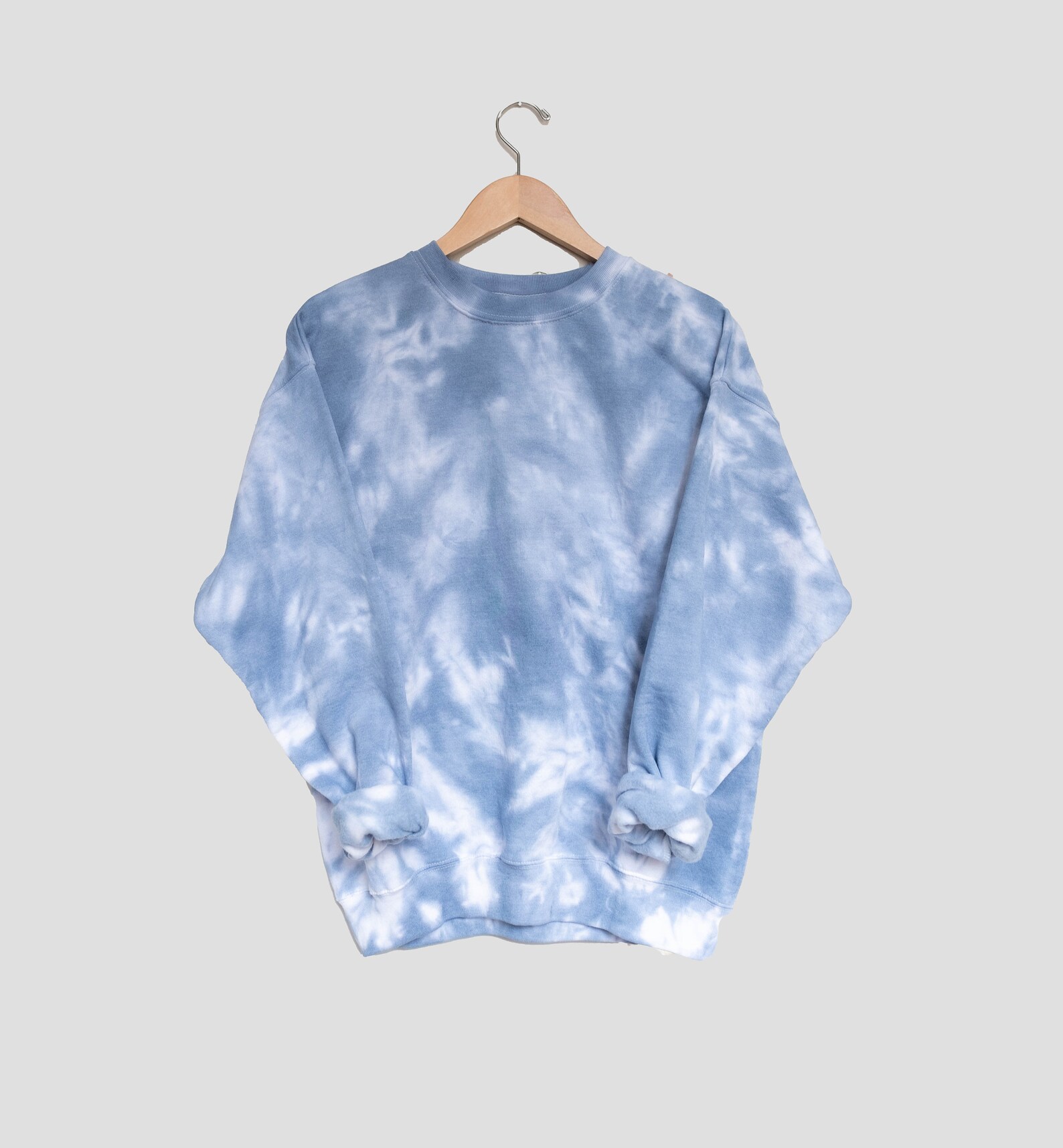 - Blue and white tie dye crewneck
