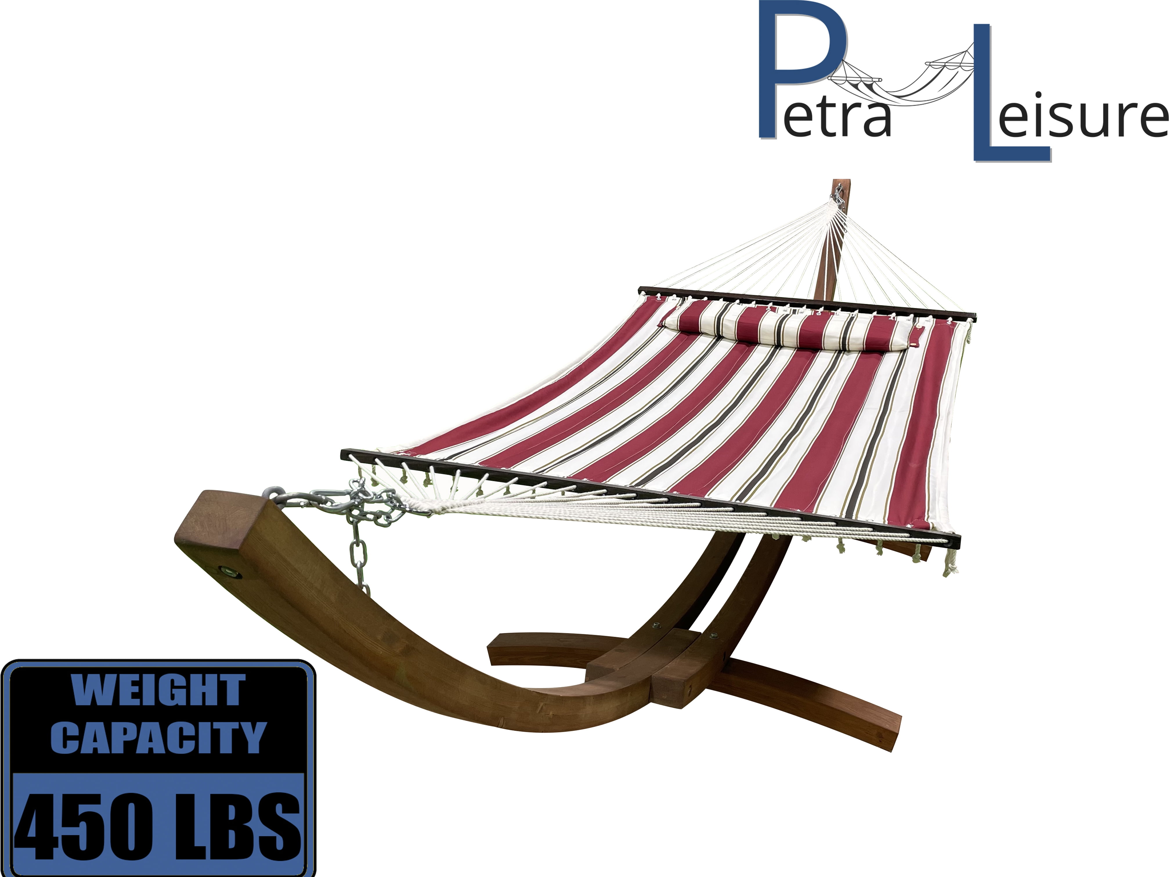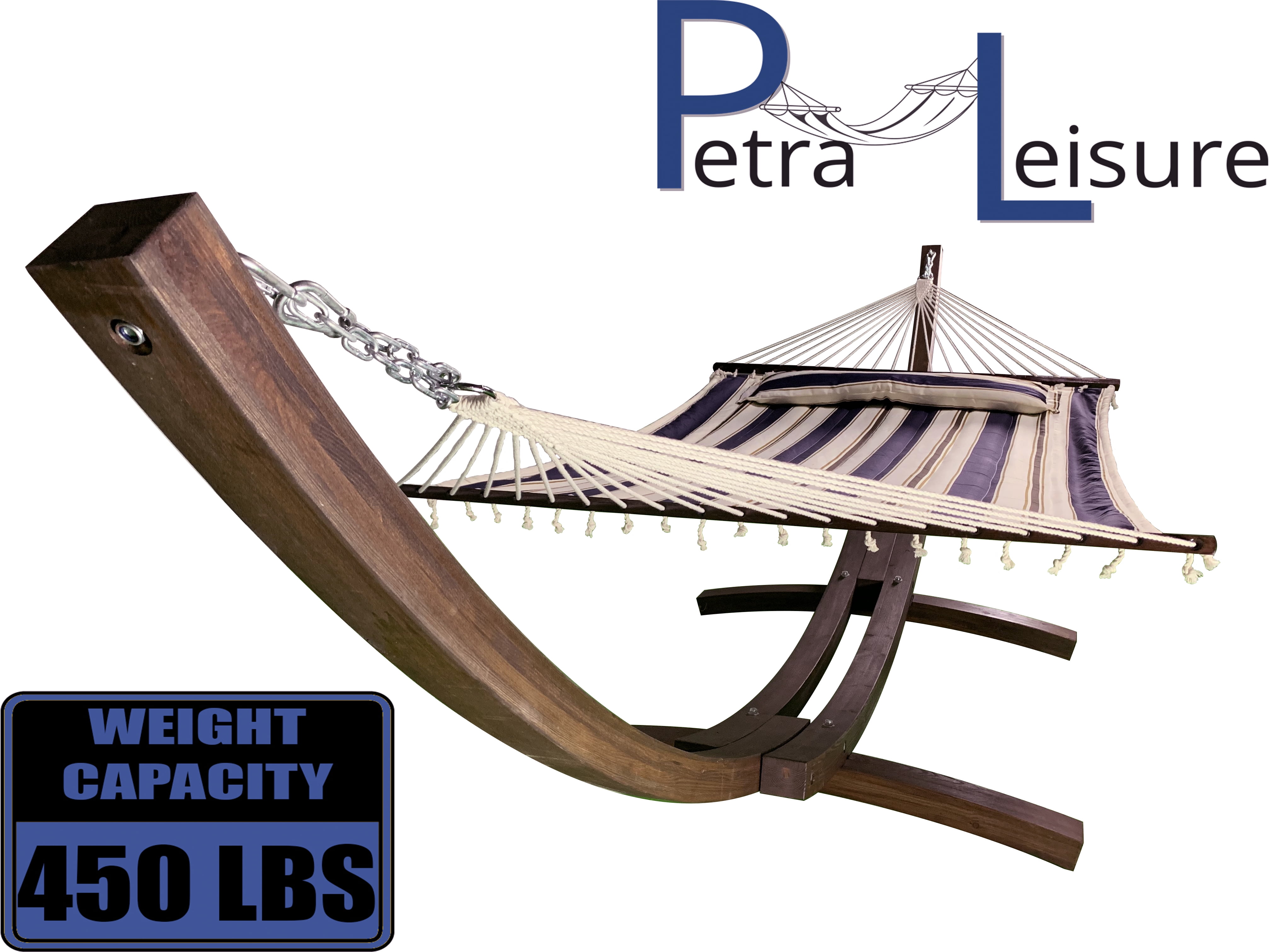 Petra leisure hammock clearance, Petra Leisure 14 Ft. Coffee Stain Wooden Arc Hammock Stand + Deluxe Quilted Elegant Blue Stripe clearance