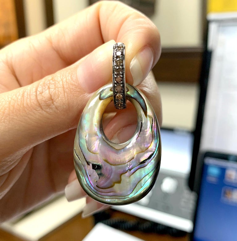 Mother of pearl dangle earrings clearance, Mother of Pearl Danglers Earrings with Brown Diamonds For Sale at 1stdibs clearance