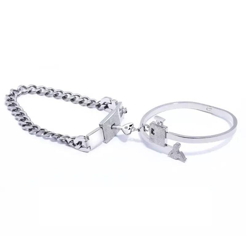 Love lock bracelet with key clearance, Love Lock Bracelet and Necklace key Pendant Collar Bangle His | Etsy clearance