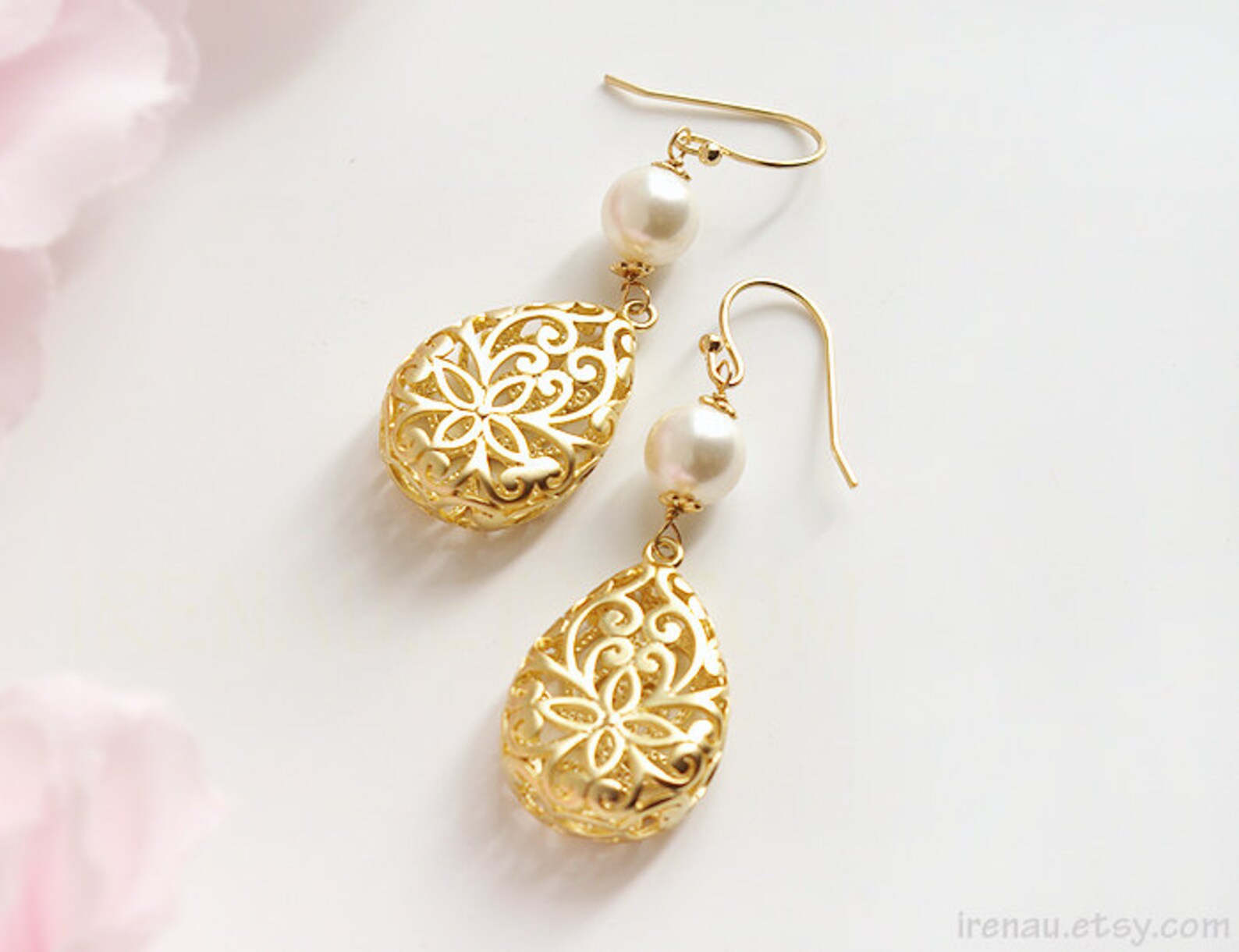 - Gold filigree teardrop earrings free shipping
