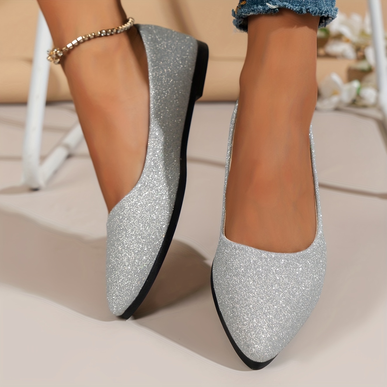 Ladies sparkly flat shoes clearance, Women's Glitter Decor Flat Shoes Elegant Point Toe Dress - Temu clearance