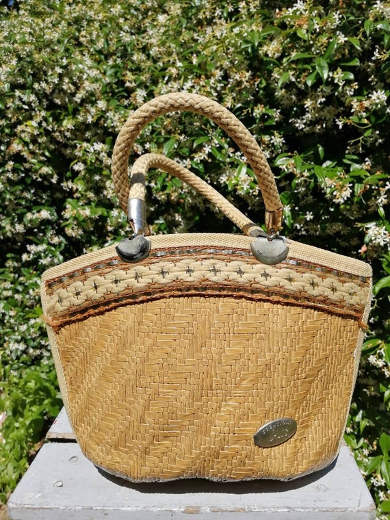 Vintage raffia bag clearance, Vintage Straw Bag 70s Raffia Handbag clearance