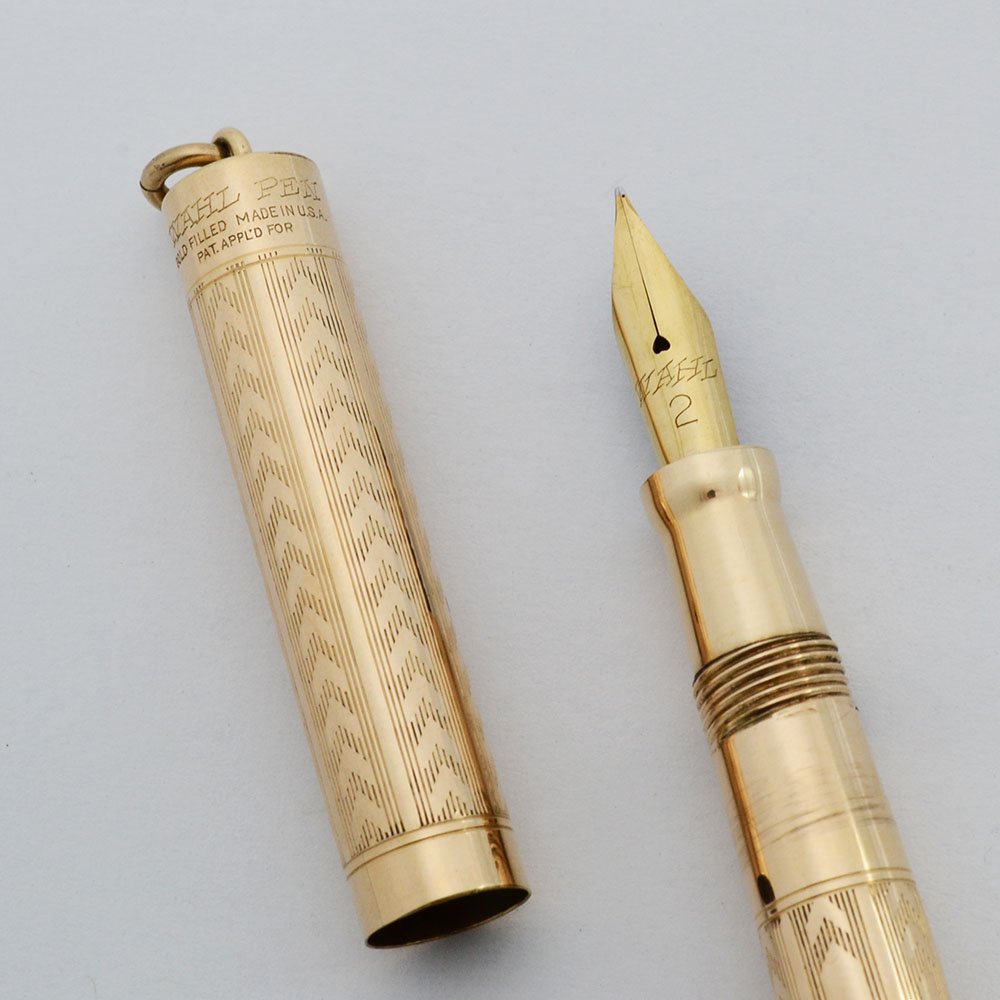 Wahl fountain pen clearance, Wahl Pen Fountain Pen - Gold Filled Chevron, Ring Top, #2 Fine Flexible Nib (Excellent clearance