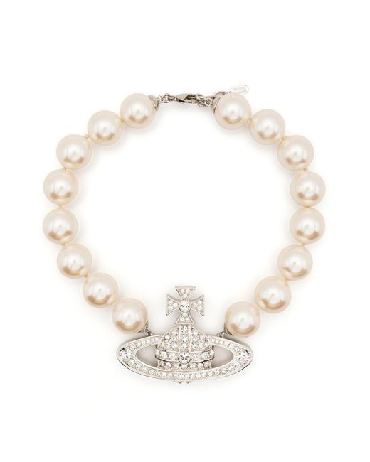 Vivienne westwood logo necklace clearance, Vivienne Westwood Logo-plaque Pearl Necklace in White | Lyst clearance