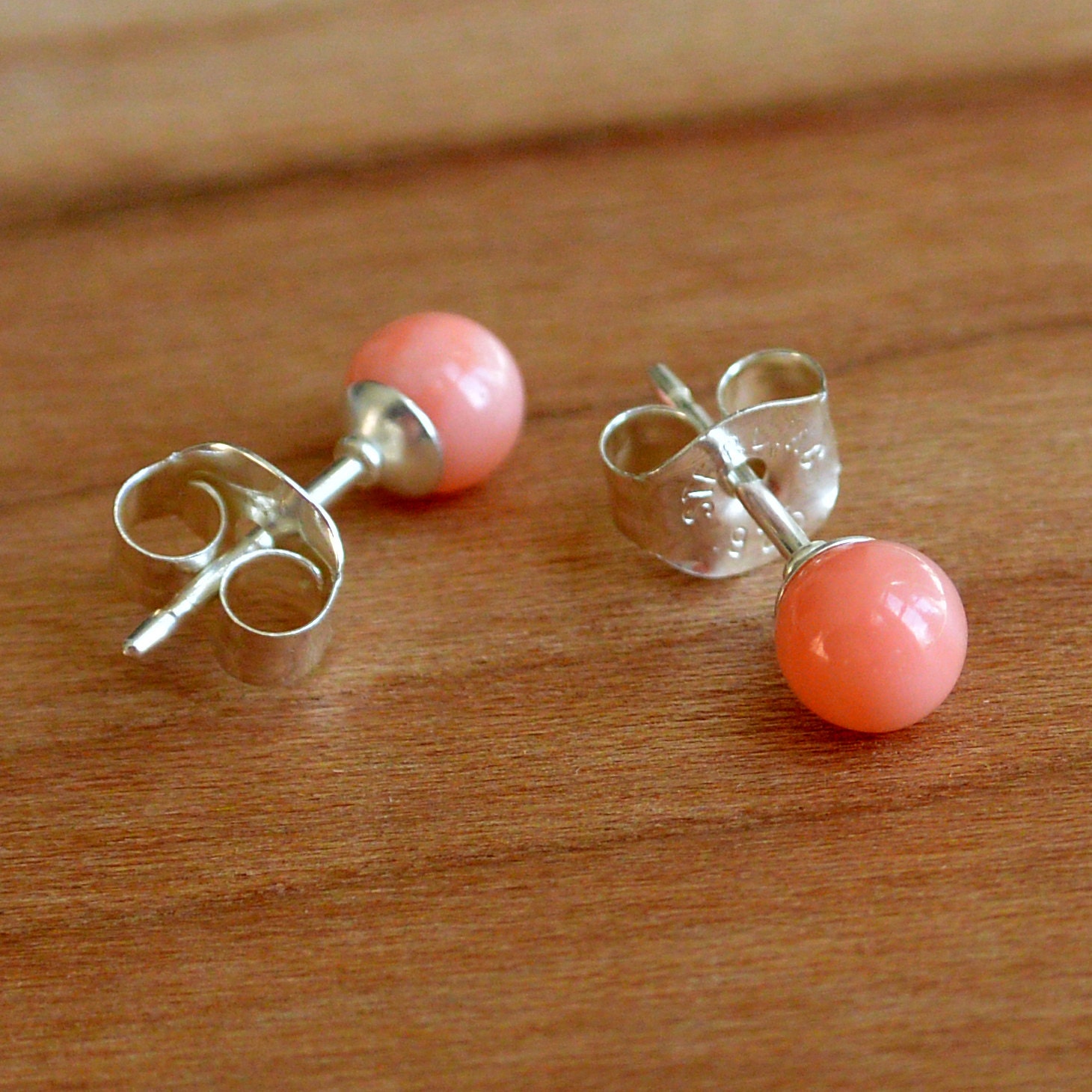 Coral earrings macys clearance, Natural Pink Coral Earrings Coral Bead Studs Small 4 mm size | Etsy clearance