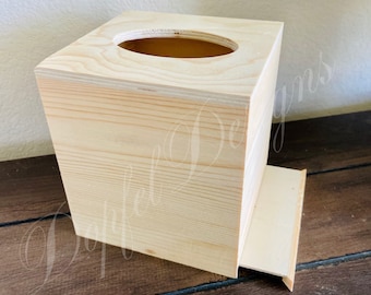 - Unfinished wood tissue box cover