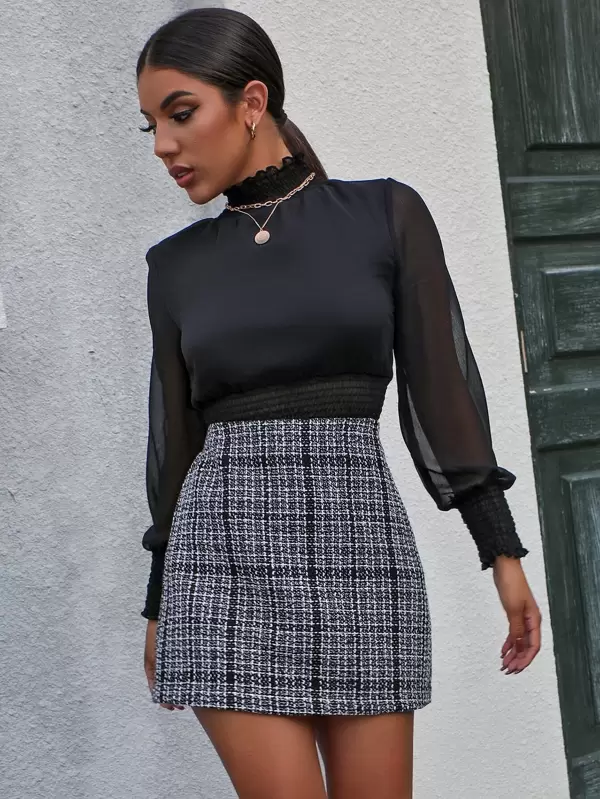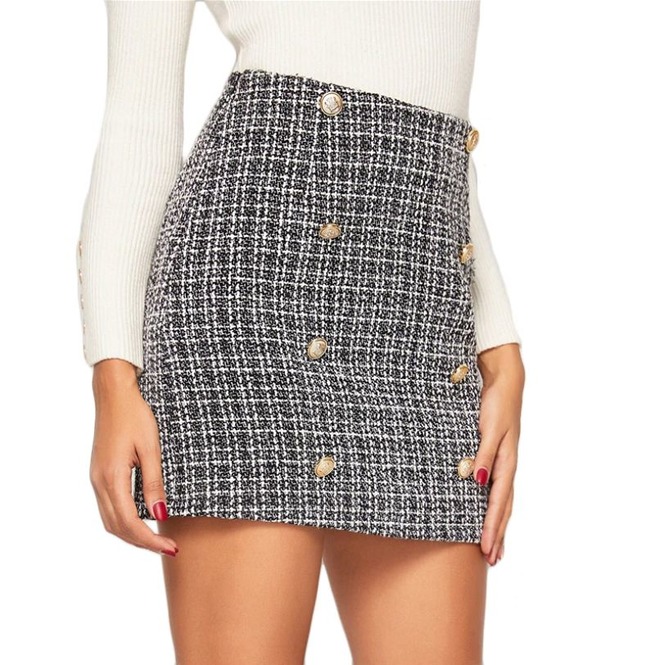 Tweed zipper skirt clearance, Streetwear Soft Grunge Plaid Double clearance