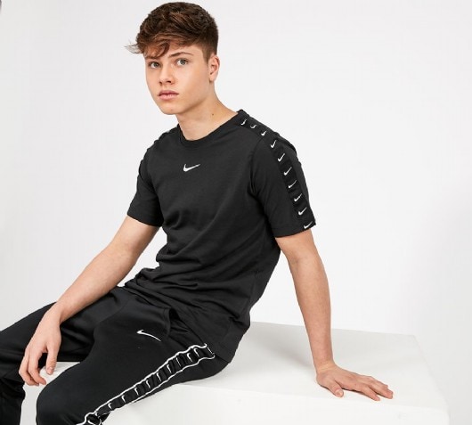Nike swoosh tape t shirt clearance, Boys' Nike Sportswear Swoosh Tape T clearance