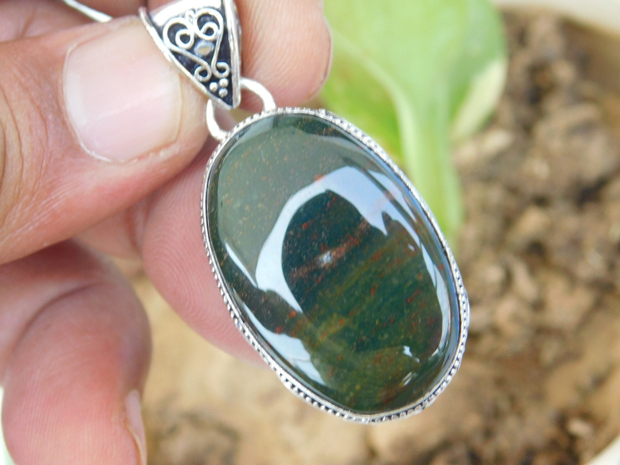 Real bloodstone necklace clearance, Bloodstone Necklace, Healing Bloodstone Necklace, Polished Bloodstone Necklace, Green Boho clearance