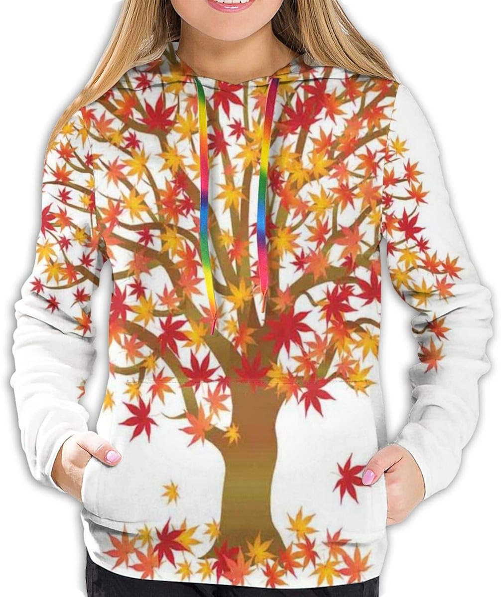 Treetop silhouette sweatshirt clearance, Women's Hoodies Tops,Fall Season Maple Tree with Foliage in Warm Colors Romantic Nature clearance