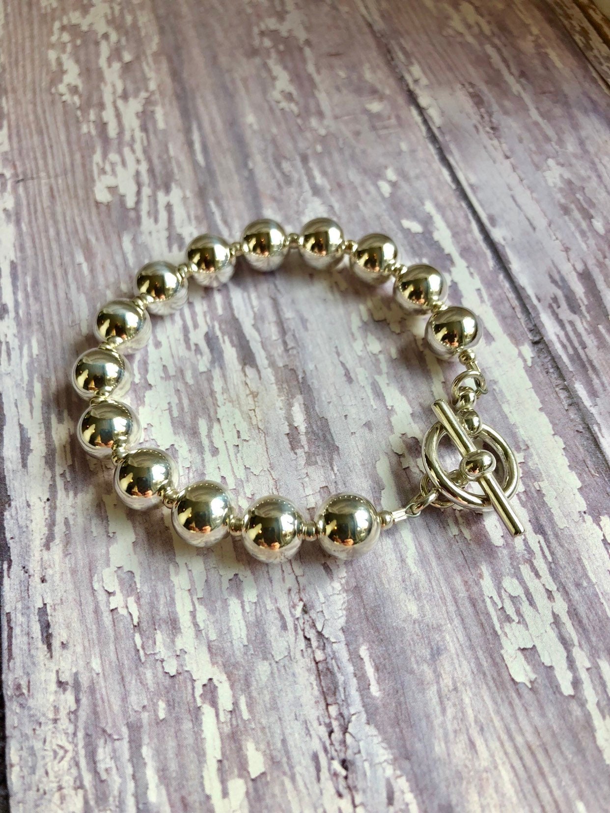 - Solid silver bead bracelet sale