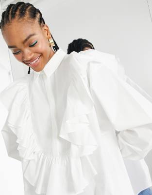 - White cotton ruffle shirt clearance