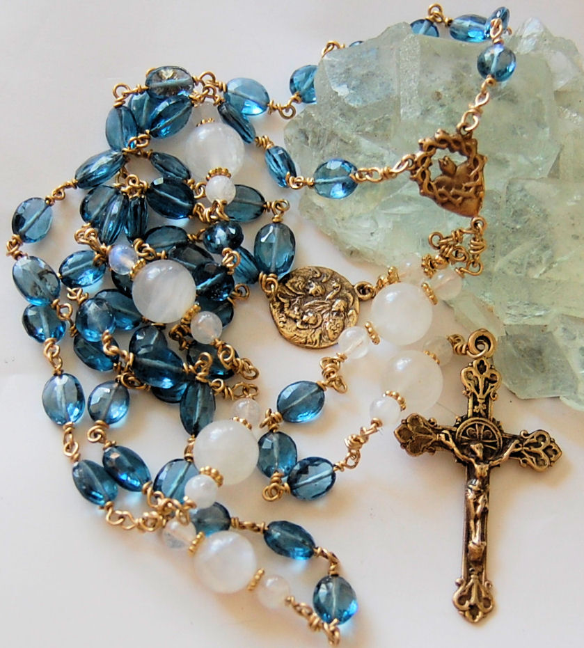 Blue and gold rosary clearance
