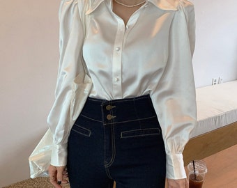 Vintage satin shirt clearance, Vintage Satin Shirt Spring Blouse clearance