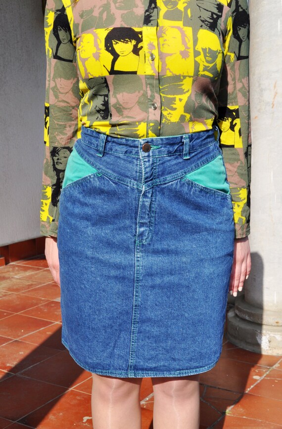 - Shopping Yellow denim skirt 80s