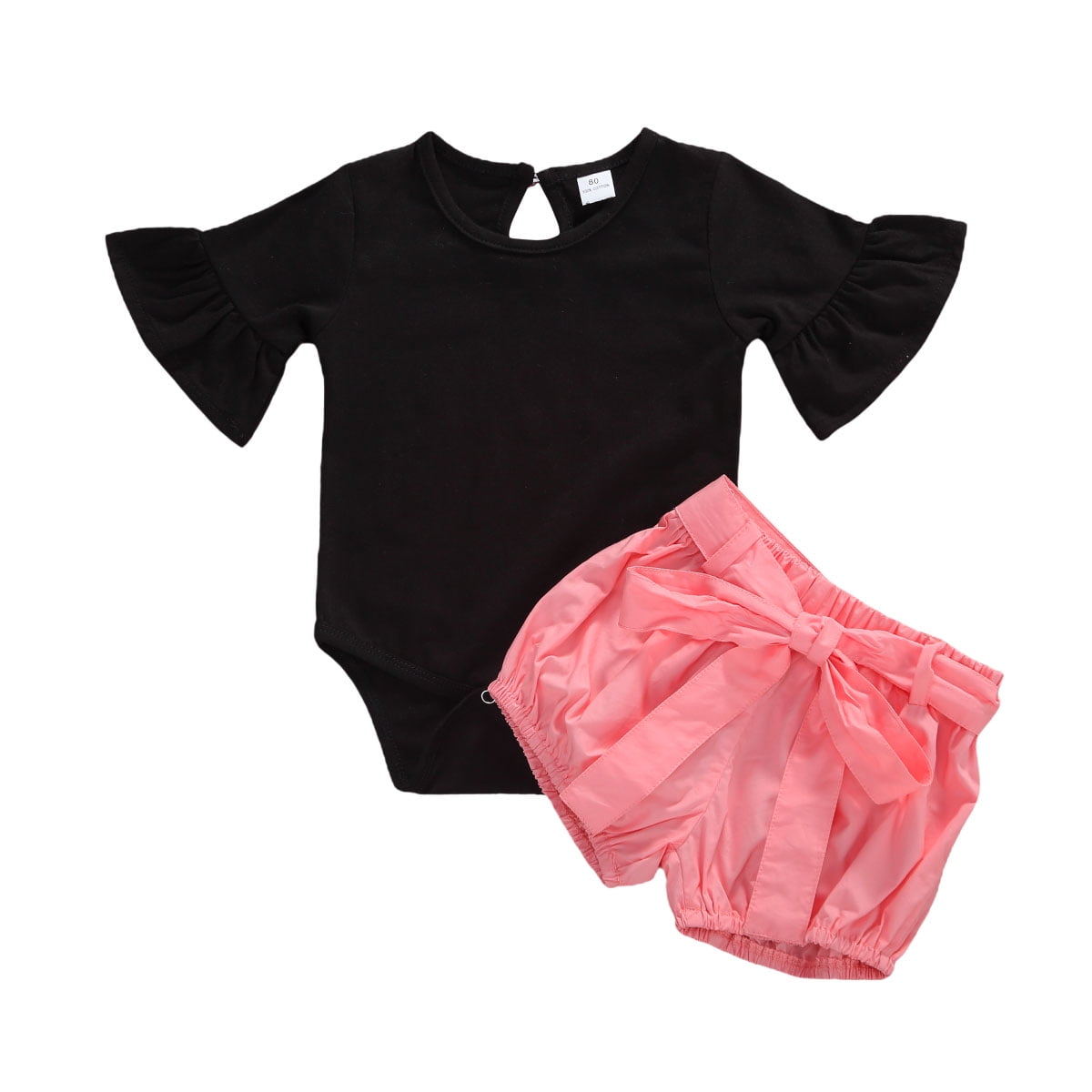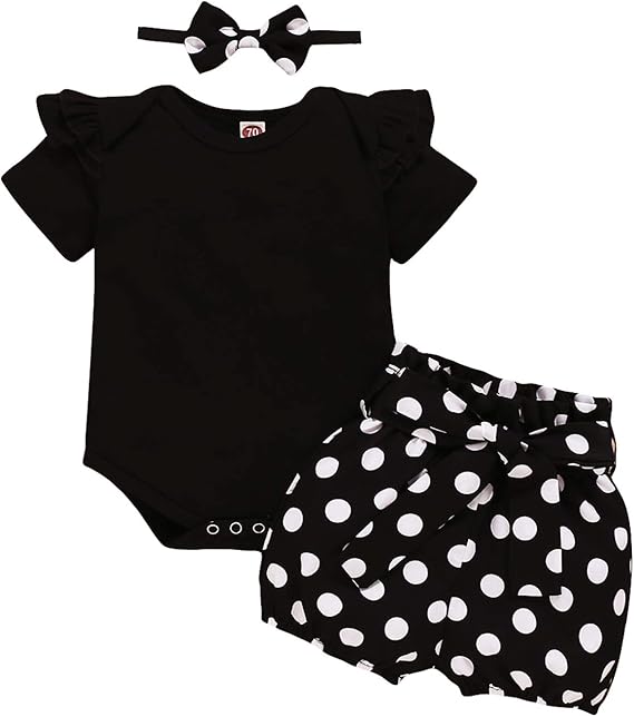 Black short set romper clearance, Summer Sweet Baby Girls Round Collar clearance