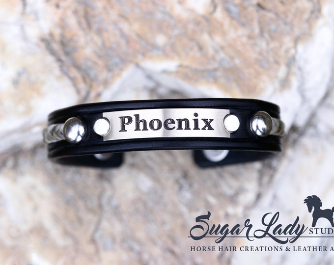 Horse hair bracelet with name plate clearance, Horse Hair and Leather Bracelet Personalized Name Plate - Etsy clearance