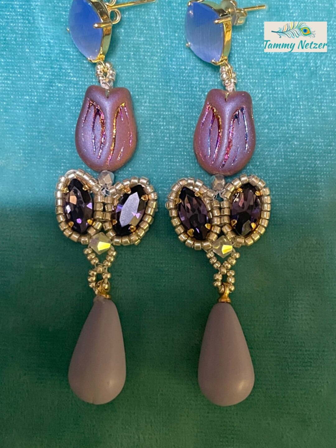 - Purple diamond earrings