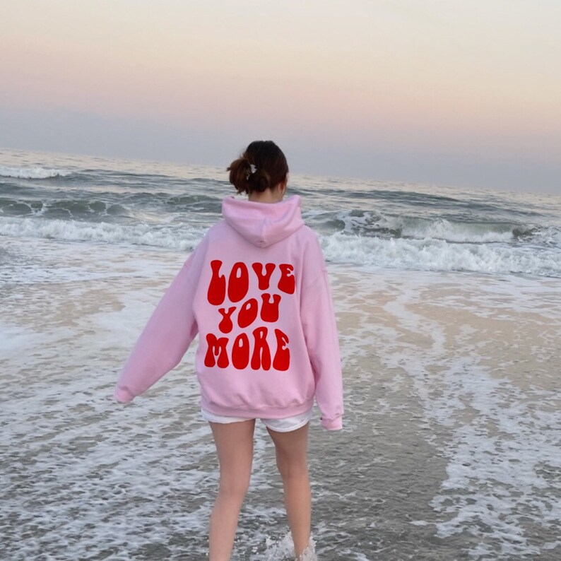 Pink aesthetic hoodie clearance, Love You More Pink Hoodie Aesthetic Hoodie - Etsy clearance