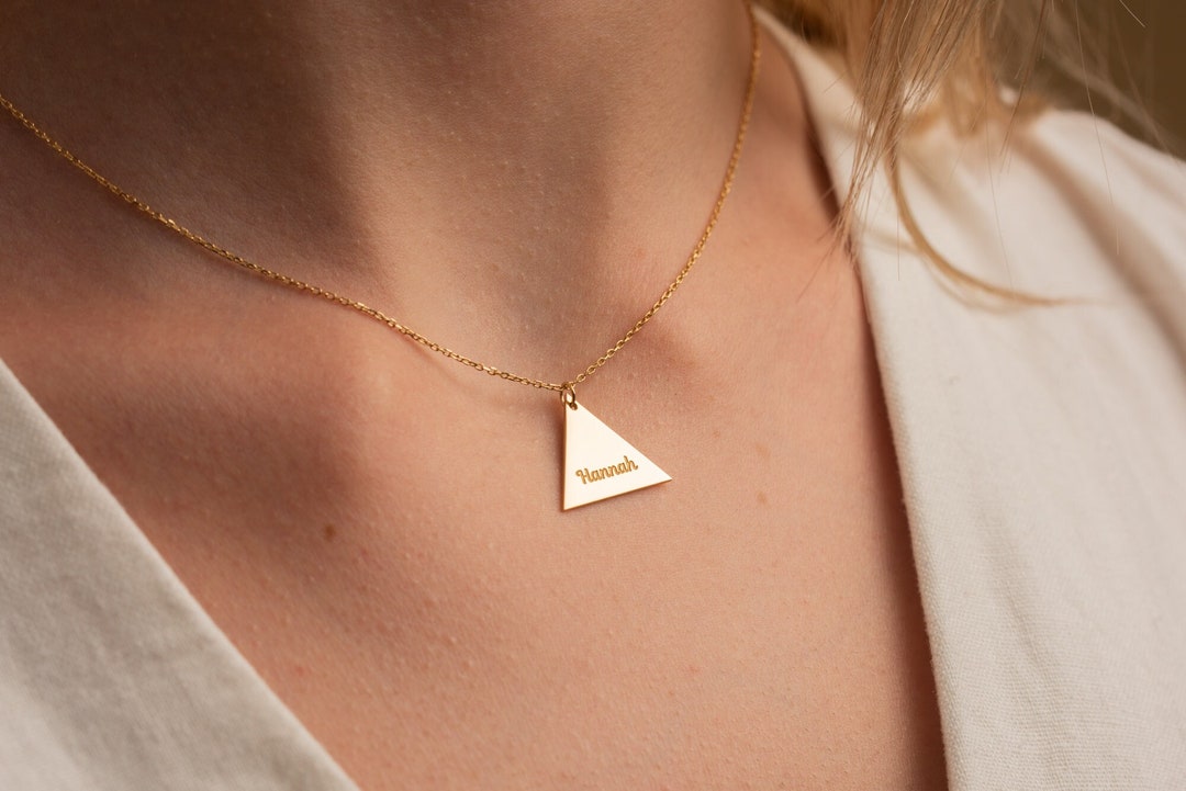 Solid gold triangle necklace clearance, Solid Gold Triangle Name Necklace Silver Triangle Necklace - Etsy clearance